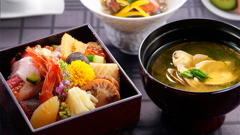 人気の「海鮮ばらちらし寿司」と「国産牛すき焼き重」を